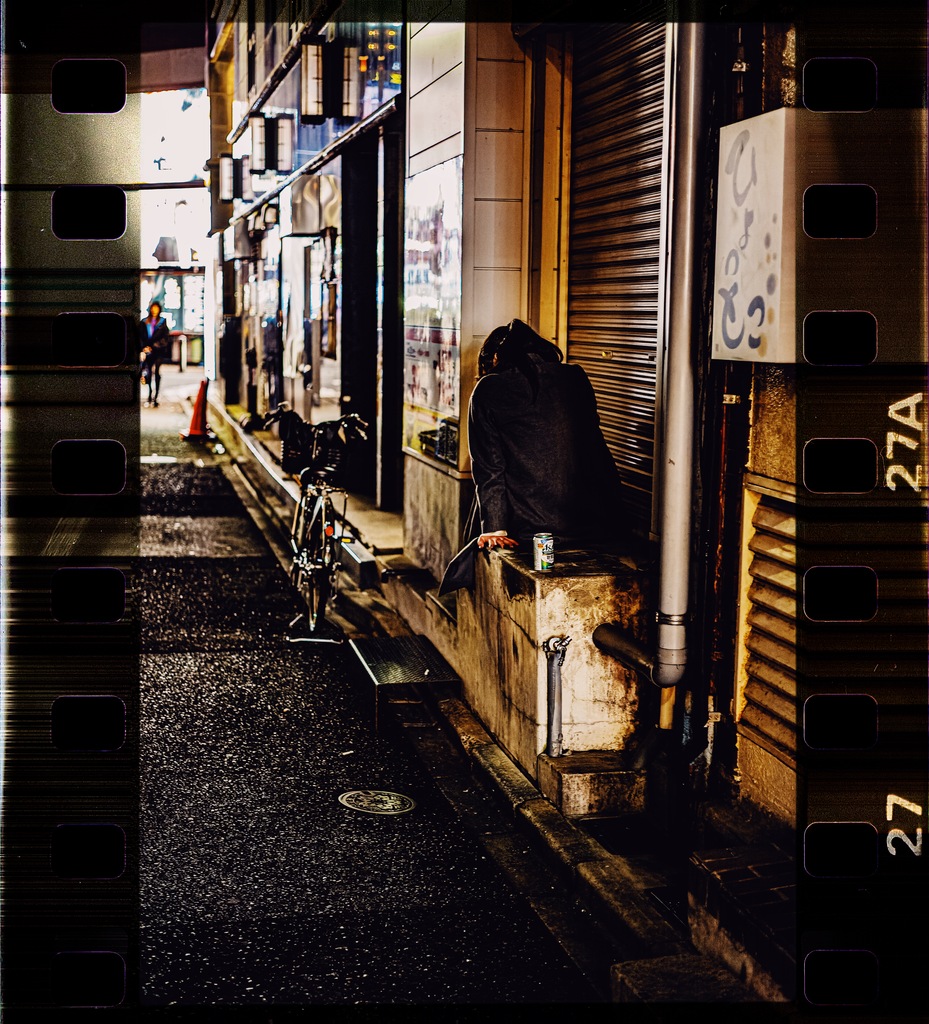 で、そんなわけで深夜も26時をまわった頃から撮影開始。早めの時間ってあんまり裏路地を歩く人達で撮りたいなって思うこともないんだけど、この時間に裏路地を歩く人々は撮りたいって思わされることが多い。なんかいろいろ意味深なんだよ。
