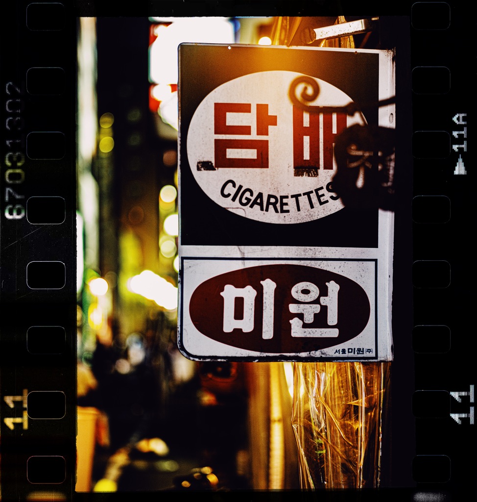 I found a sign of cigarettes written in Hangul.