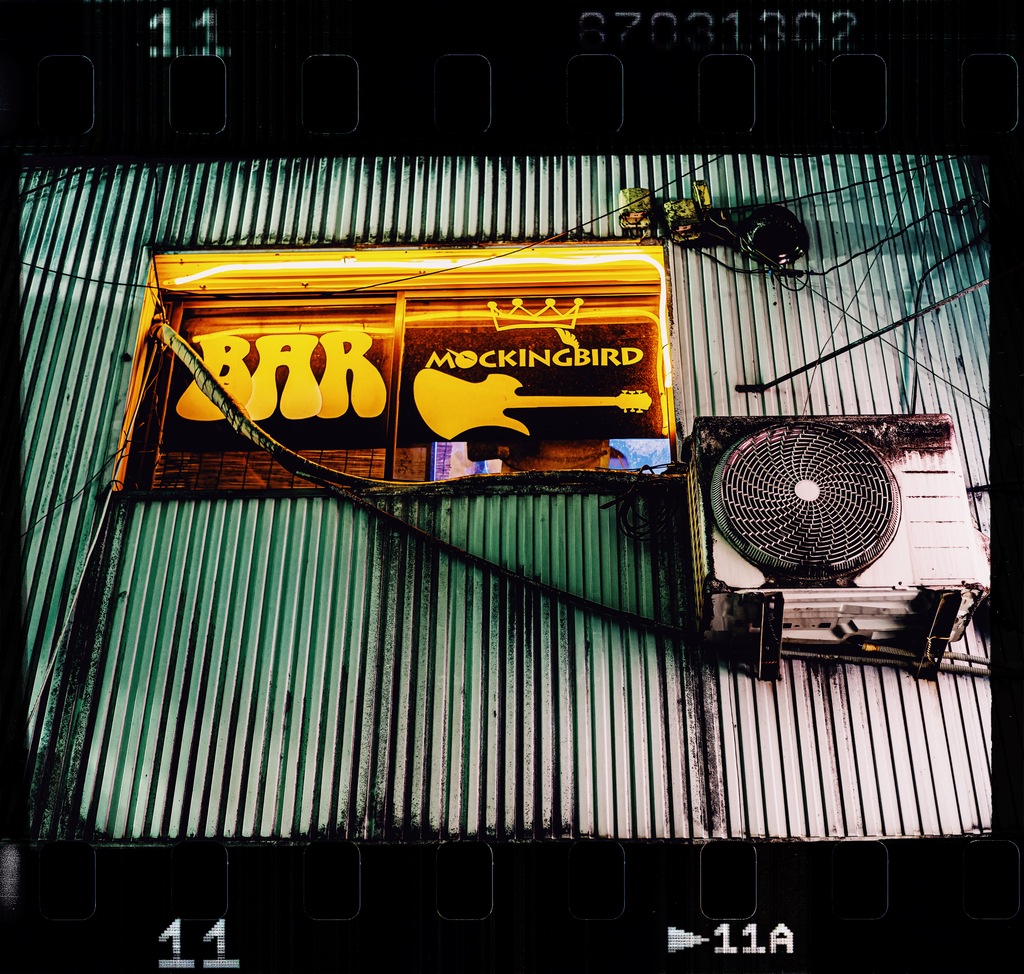 "MOCKINGBIRD"って名前のバーっぽい。ちなみに自分の長年の愛器のギターもモッキンバード。同じシルエットでしょ?