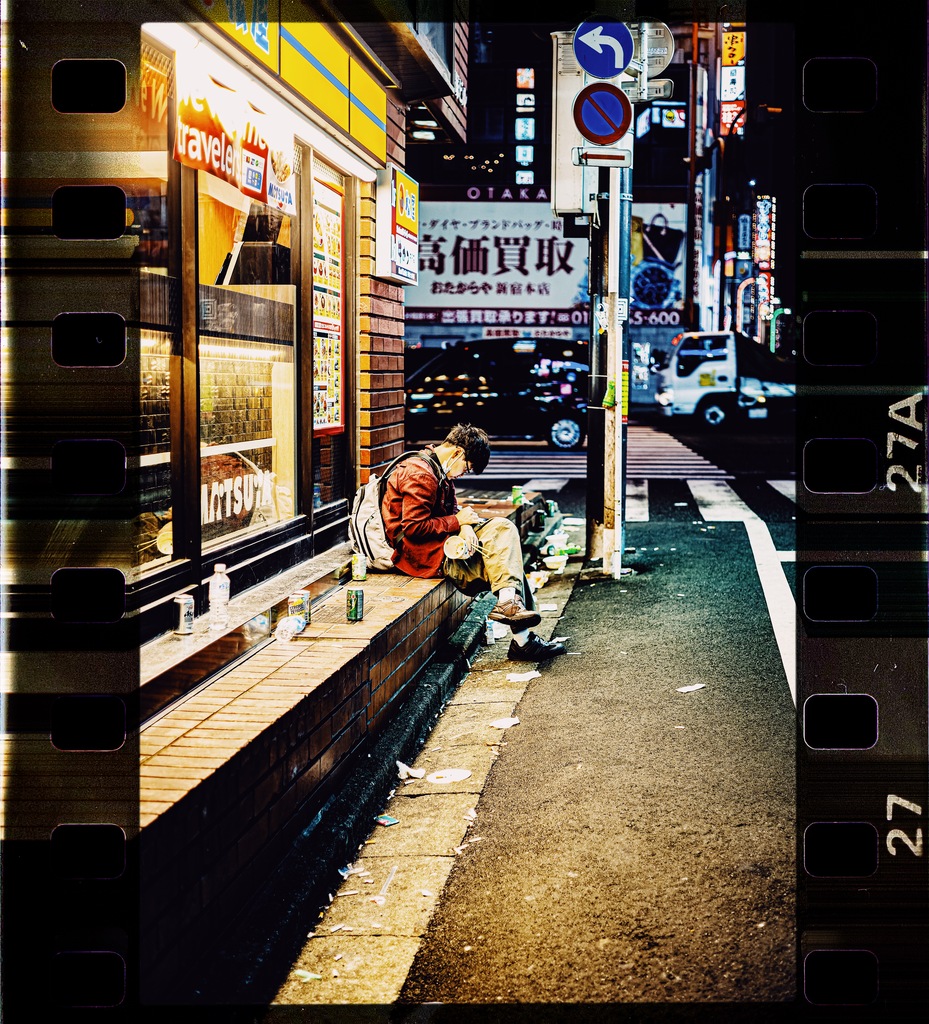 Well, we finished watching the Godzilla movie, said goodbye to my friend at the station and headed back to Kabukicho to go to a parking lot. It was already almost morning. There were the remnants of someone eating or drinking scattered here and there.