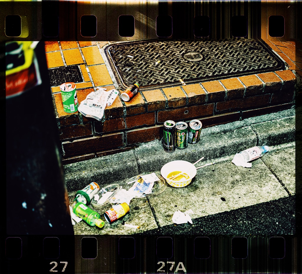 さて、ゴジラの映画も観終わって駅で友達と別れて自分は駐車場へ向かうために歌舞伎町へと戻る。もうほぼ朝。あちらこちらにきっと夜中に誰かが食ったり飲んだりした残骸が。
