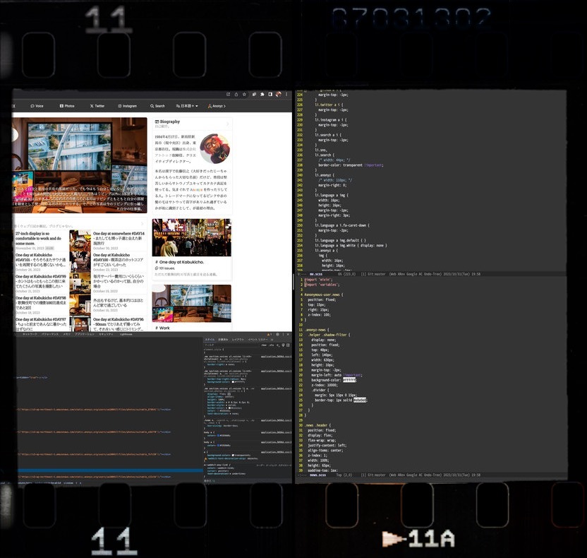 仕事の中でいろいろなことをしているけど、その中でも重要なことのひとつがコードを書くこと。27インチで 5K の解像度があると上のスクリーンショットみたいに1画面にエディタとブラウザの2つを1画面にそれぞれ余裕のあるサイズで開けて最高。特に自分の場合はコードって言ってもウェブ系のモノを書いていることがほとんどだから、Emacs とブラウザを同時に開いておけるってそれだけでかなり効率がいい。